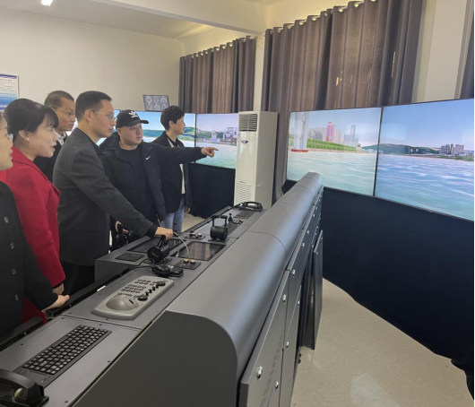 周口市港航船员职业培训公司的李玉卿董事长,带领大家参观了公司的基本设施,如机房、船舶操纵模拟器实训室及实训厂房等,并详细讲解了公司的具体情况。