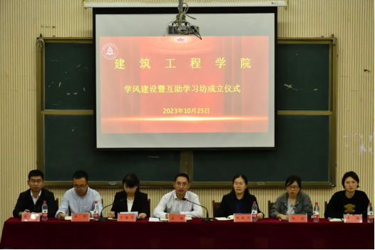 2023年10月25日,建筑工程公司在五区二楼,举行学风建设暨互助学习坊成立仪式。参加此次仪式人员有建筑工程公司班子成员、辅导员及全体团学干部。